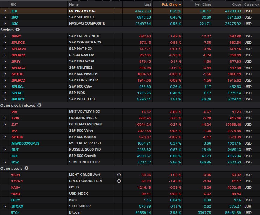 S&P 500 flat, Nasdaq and Dow up very slightly