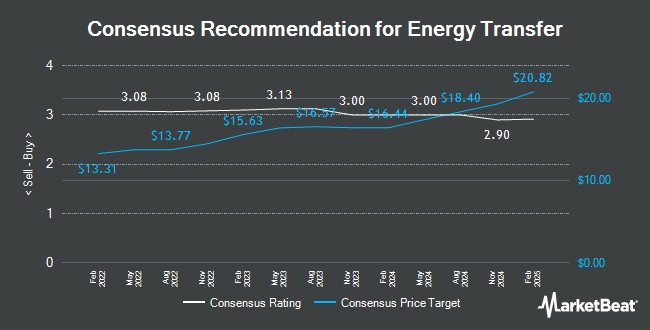 A number of other equities analysts have also issued reports on the company. Wells Fargo & Company reaffirmed an "overweight" rating and issued a $23.00 target price (up from $21.00) on shares of Energy Transfer in a research report on Tuesday, August 12th. Weiss Ratings restated a "buy (b)" rating on shares of Energy Transfer in a research report on Wednesday, October 8th. Barclays restated an "overweight" rating and set a $25.00 price target on shares of Energy Transfer in a report on Wednesday, October 15th. UBS Group restated a "buy" rating and set a $22.00 price objective on shares of Energy Transfer in a research report on Wednesday, October 15th. Finally, Scotiabank dropped their price target on shares of Energy Transfer from $23.00 to $21.00 and set a "sector outperform" rating on the stock in a research note on Thursday, November 13th. Thirteen investment analysts have rated the stock with a Buy rating and two have issued a Hold rating to the company's stock. According to data from MarketBeat, the company currently has a consensus rating of "Moderate Buy" and an average price target of $21.62.
