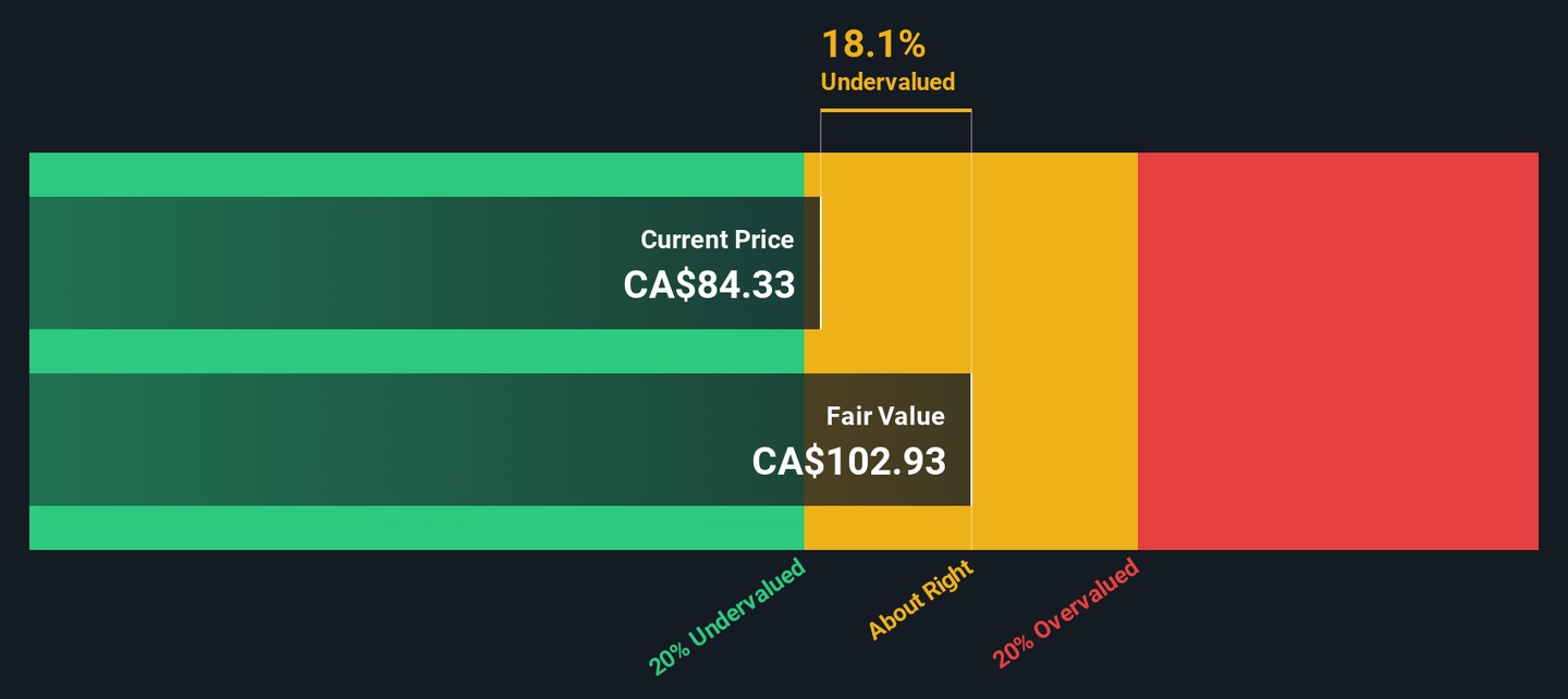 The output of this DCF analysis estimates Nutrien’s intrinsic value at $117.64 per share. Comparing this to the current share price, the model suggests that Nutrien is trading at a 28.4% discount.