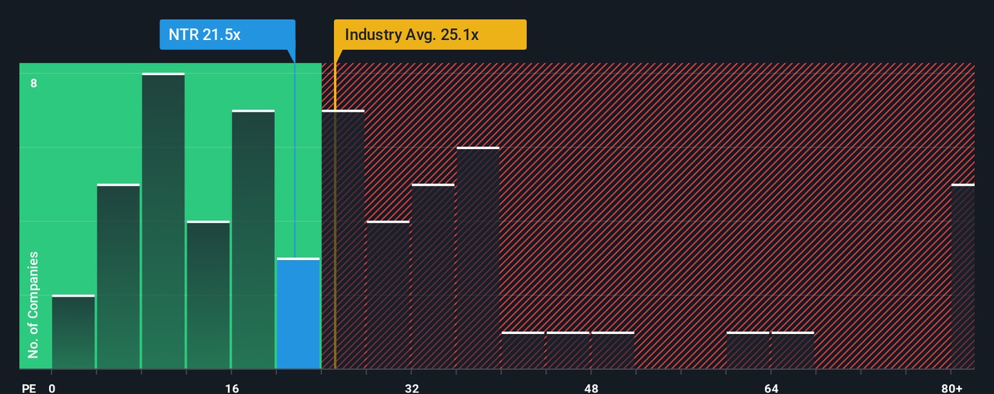 Nutrien currently trades at a PE ratio of 16.1x. For context, the average PE ratio across the Chemicals industry is 21.0x, and Nutrien's peer group averages 22.5x. On the surface, this places the stock at a noticeable discount relative to these benchmarks.