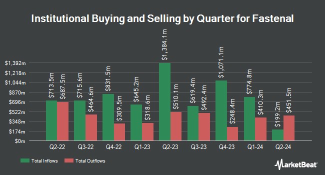 Several other institutional investors and hedge funds have also recently added to or reduced their stakes in FAST. Integrated Wealth Concepts LLC grew its stake in shares of Fastenal by 2.4% in the 1st quarter. Integrated Wealth Concepts LLC now owns 6,276 shares of the company's stock valued at $487,000 after purchasing an additional 147 shares during the last quarter. Advisory Alpha LLC lifted its holdings in shares of Fastenal by 5.8% during the first quarter. Advisory Alpha LLC now owns 3,407 shares of the company's stock worth $264,000 after purchasing an additional 187 shares during the period. Riverview Trust Co grew its position in Fastenal by 100.0% in the 2nd quarter. Riverview Trust Co now owns 584 shares of the company's stock valued at $25,000 after buying an additional 292 shares during the last quarter. Cary Street Partners Investment Advisory LLC increased its stake in Fastenal by 10.5% in the 1st quarter. Cary Street Partners Investment Advisory LLC now owns 3,329 shares of the company's stock valued at $258,000 after buying an additional 317 shares during the period. Finally, Financial Network Wealth Advisors LLC increased its stake in Fastenal by 19.4% in the 1st quarter. Financial Network Wealth Advisors LLC now owns 1,980 shares of the company's stock valued at $154,000 after buying an additional 322 shares during the period. 81.38% of the stock is owned by hedge funds and other institutional investors.