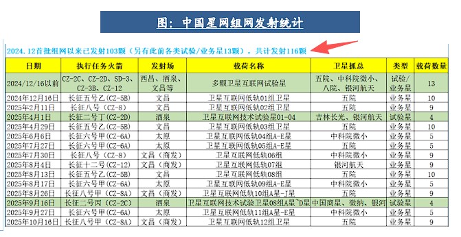As of October 2025, China Star Network has launched a total of 116 satellites (including experimental and operational satellites), while Qianfan has launched a total of 108 networking satellites. Although there is still a gap compared to Starlink, the launch frequency is becoming "routine."