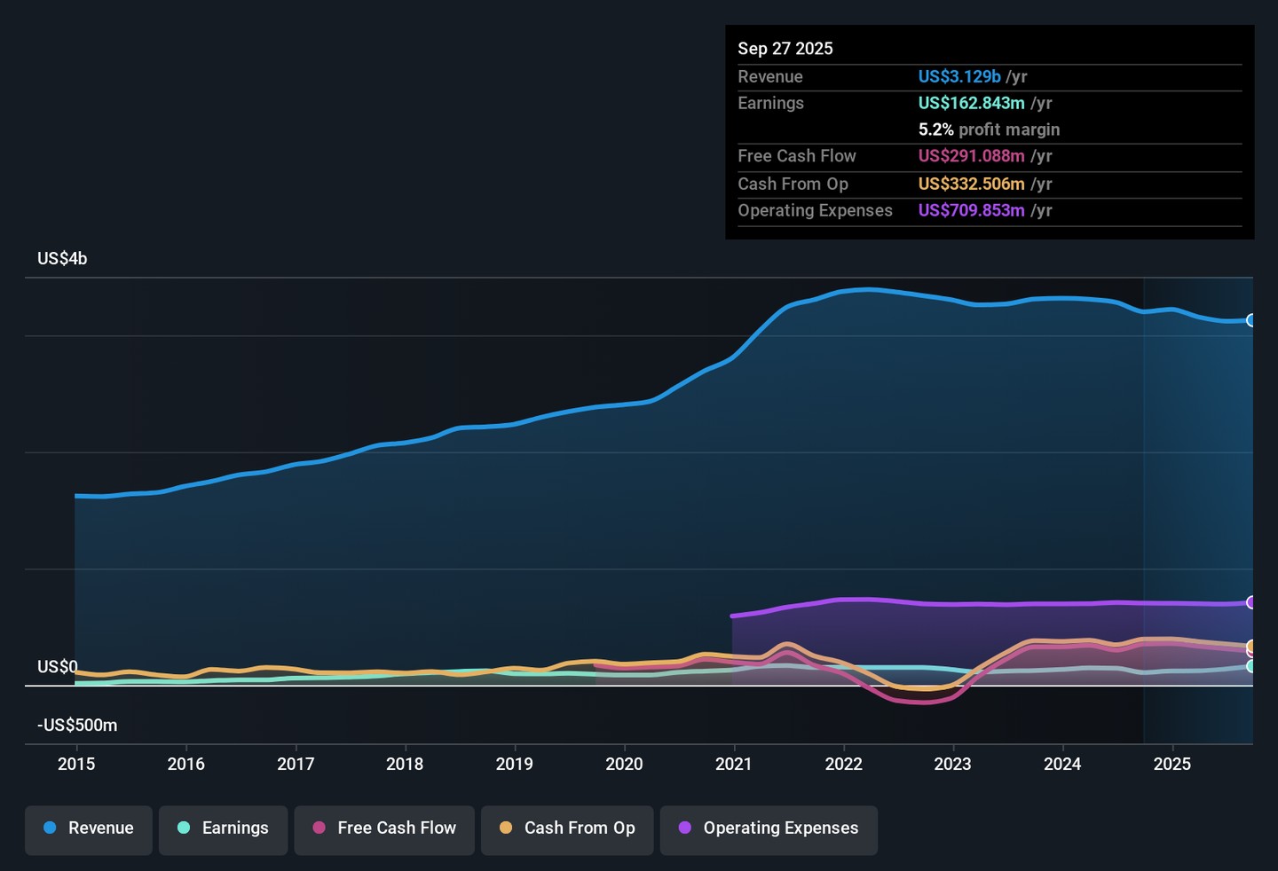 - Recent headlines have focused on Central Garden & Pet sharpening its portfolio through brand refreshes and distribution wins in its lawn, garden, and pet categories, alongside ongoing efforts to streamline operations and strengthen its balance sheet. Together, these moves help explain why the share price has been volatile as investors reassess how durable its growth and margins might be.