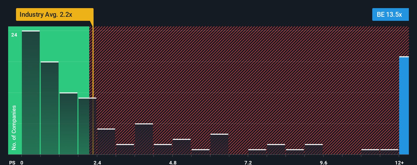 In general, higher growth expectations and lower perceived risk support a higher sales multiple, while slower growth or elevated risk usually mean a lower, more conservative ratio is appropriate. Bloom Energy currently trades on a P/S of about 13.65x, which is well above the Electrical industry average of roughly 2.09x and the peer group average of around 2.79x. This indicates that the market is already pricing in strong growth and a favorable outlook.