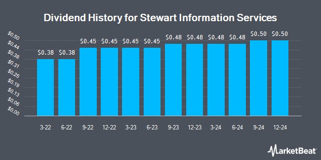 Stewart Information Services Corporation (NYSE:STC - Get Free Report) announced a quarterly dividend on Monday, December 1st. Shareholders of record on Monday, December 15th will be given a dividend of 0.525 per share by the insurance provider on Tuesday, December 30th. This represents a c) annualized dividend and a yield of 2.8%. The ex-dividend date is Monday, December 15th.