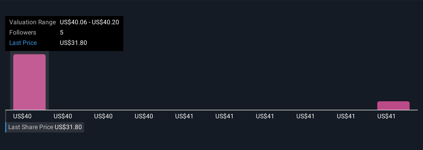 Two Simply Wall St Community fair value estimates for Resideo cluster tightly around US$41.30 to US$41.50, underscoring how differently individual investors can view the same numbers. You may want to weigh those opinions against the risk that Big Tech rivals could pressure Resideo’s smart home market share and, in turn, its longer term earnings power.
