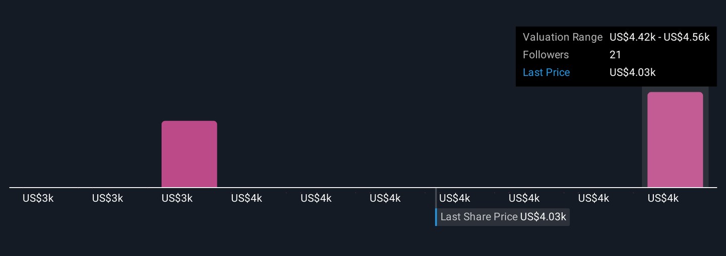 For example, one AutoZone Narrative might assume that ongoing store expansion, supply chain investments and steady margins justify a fair value near the top of analyst targets around $4,900. A more cautious Narrative could highlight FX headwinds, tariffs and rising expenses to support a fair value closer to the low end near $2,900. This gives you a clear framework to choose which story best matches your own expectations.