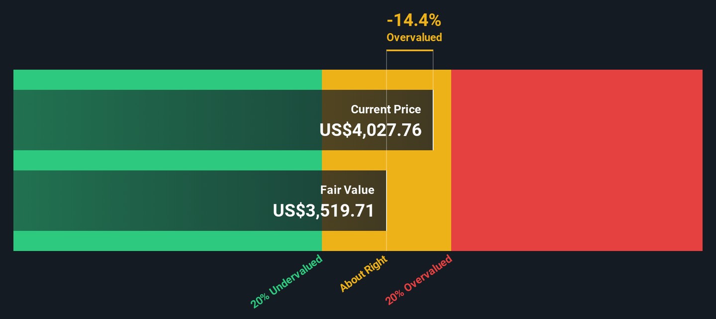 Our Discounted Cash Flow (DCF) analysis suggests AutoZone may be overvalued by 16.7%. Discover 928 undervalued stocks or create your own screener to find better value opportunities.