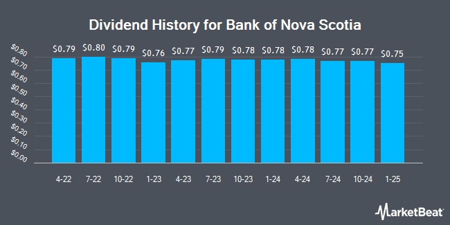 Bank of Nova Scotia (The) (NYSE:BNS - Get Free Report) TSE: BNS declared a quarterly dividend on Tuesday, December 2nd. Shareholders of record on Tuesday, January 6th will be paid a dividend of 1.10 per share by the bank on Wednesday, January 28th. This represents a c) annualized dividend and a yield of 6.2%. The ex-dividend date is Tuesday, January 6th.