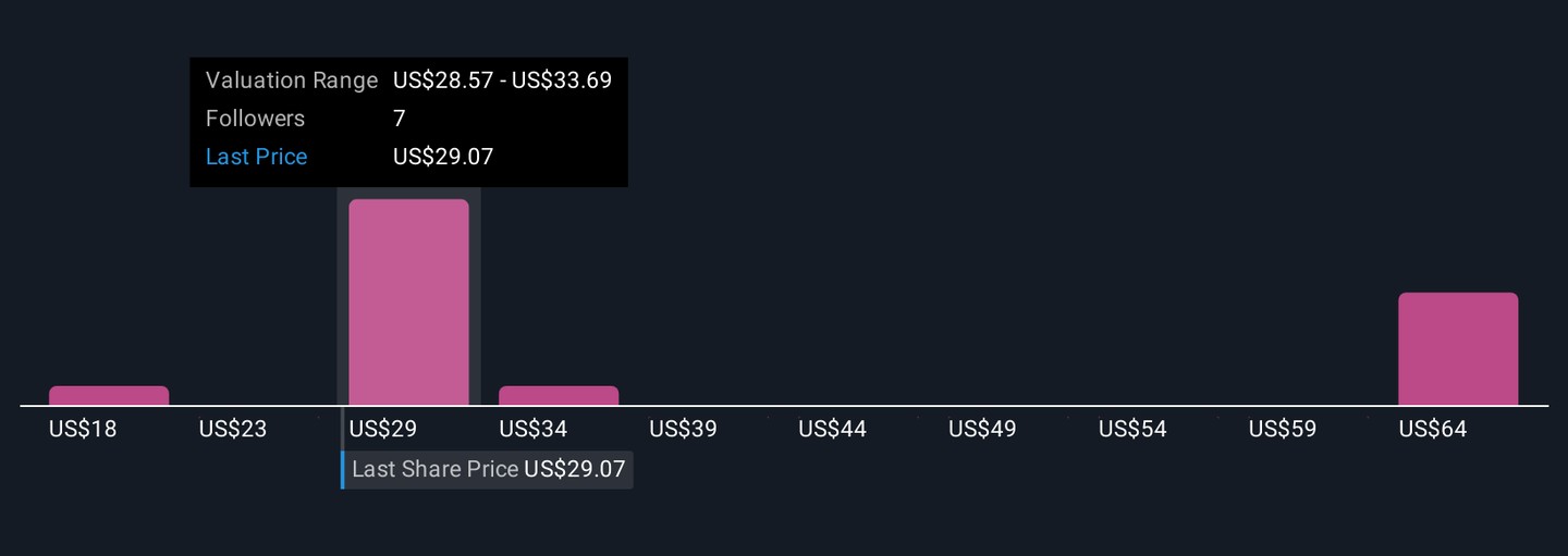 Five members of the Simply Wall St Community currently estimate Pennant’s fair value between US$18.33 and US$69.53, reflecting very different expectations. Against that backdrop, the eased 2026 Medicare rule helps some concerns, but reimbursement dependence and integration execution still shape how Pennant’s performance could unfold, so it is worth comparing several viewpoints before deciding what the stock is worth.
