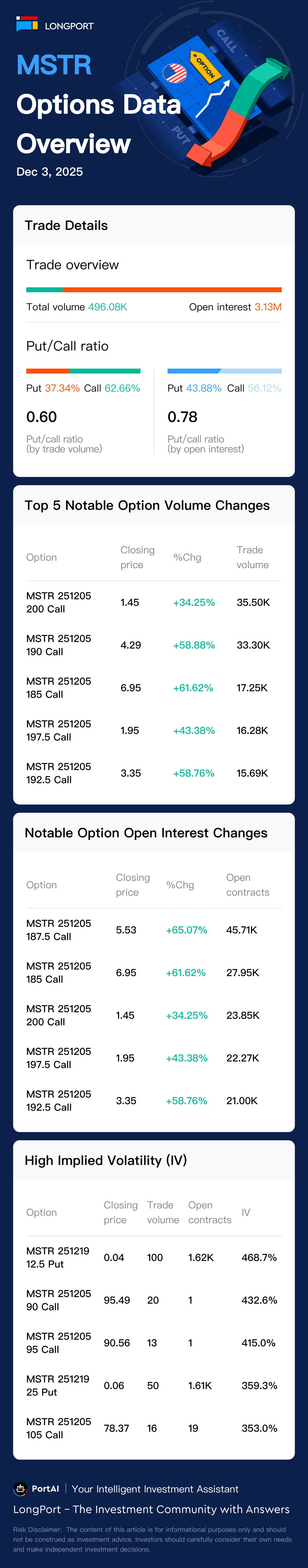 On December 3, Eastern Time, Strategy options saw a total of 496079 contracts traded, with calls accounting for 62% and puts making up 37%.