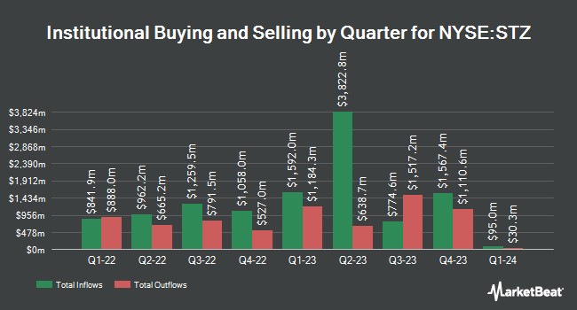 A number of other institutional investors have also added to or reduced their stakes in STZ. Vanguard Group Inc. boosted its position in shares of Constellation Brands by 18.6% during the 1st quarter. Vanguard Group Inc. now owns 18,417,604 shares of the company's stock valued at $3,379,999,000 after acquiring an additional 2,882,817 shares during the last quarter. Wellington Management Group LLP raised its stake in Constellation Brands by 127.9% in the first quarter. Wellington Management Group LLP now owns 4,480,788 shares of the company's stock valued at $822,314,000 after purchasing an additional 2,514,517 shares in the last quarter. Grantham Mayo Van Otterloo & Co. LLC lifted its position in Constellation Brands by 39.6% during the second quarter. Grantham Mayo Van Otterloo & Co. LLC now owns 3,675,855 shares of the company's stock valued at $597,988,000 after purchasing an additional 1,042,904 shares during the last quarter. Geode Capital Management LLC lifted its position in Constellation Brands by 13.6% during the second quarter. Geode Capital Management LLC now owns 3,737,860 shares of the company's stock valued at $605,293,000 after purchasing an additional 448,259 shares during the last quarter. Finally, Nuveen LLC purchased a new position in Constellation Brands in the 1st quarter worth approximately $63,377,000. 77.34% of the stock is currently owned by institutional investors.