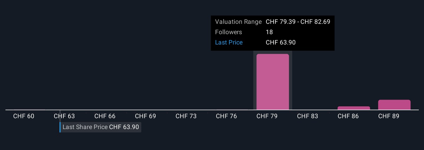 For example, one investor might build an Alcon Narrative that focuses on potential surgical workflow gains, margin expansion and a Fair Value above CHF98, while another takes a more cautious view around competition, integration risks and slower procedure growth, landing closer to CHF62, and both perspectives can coexist and be compared side by side on the platform.