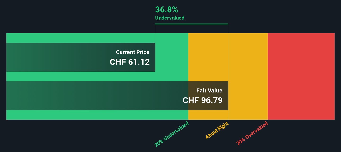 Alcon's stock has shown signs of recovery, gaining 8.4% in the last month despite a 17.8% decline over the past year. Recent product expansions and strategic investments have improved market sentiment. A Discounted Cash Flow analysis suggests Alcon is undervalued by 31%, while its PE ratio is slightly above the industry average, indicating the stock is priced in line with its fundamentals. The market may be underestimating Alcon's long-term cash generation potential.