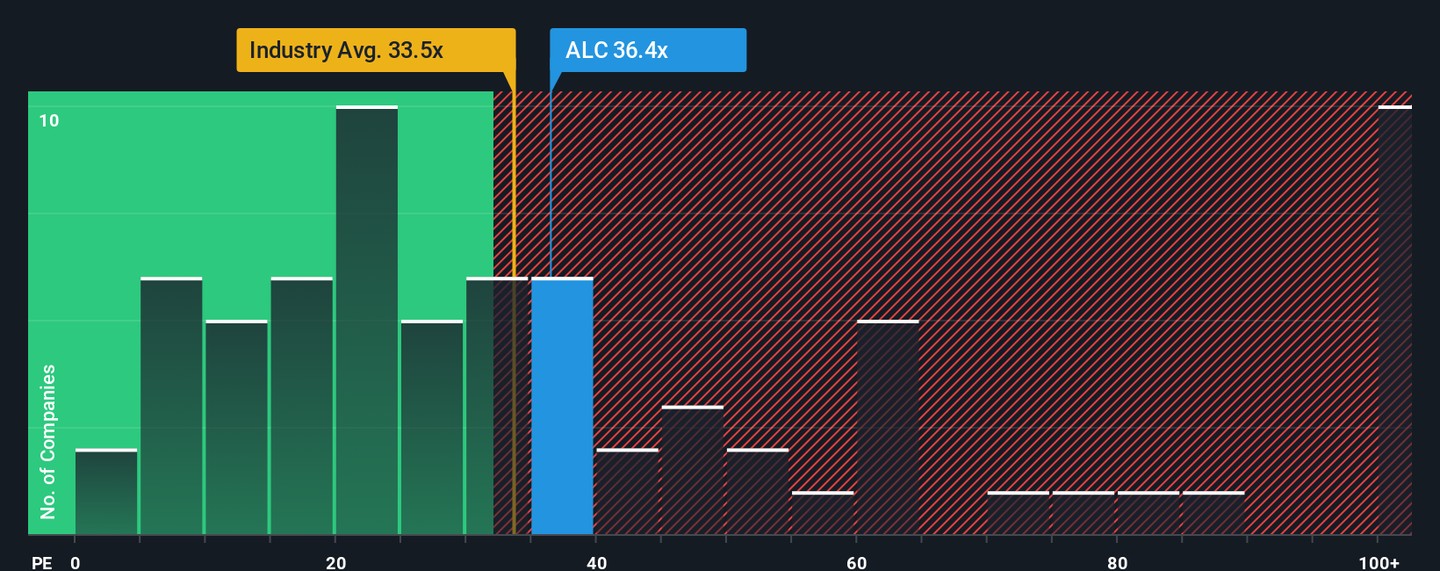 Alcon currently trades on a PE of about 37.45x, which is richer than the Medical Equipment industry average of roughly 27.71x and above the peer group average of around 23.97x. That might initially make the stock look expensive relative to its sector.