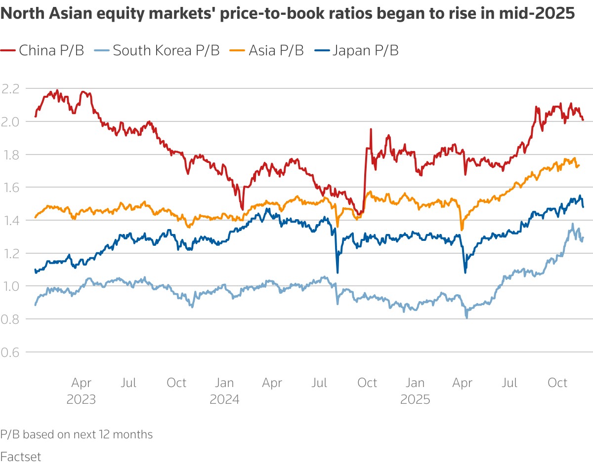 North Asian markets’ price to book began to surge from mid-2025