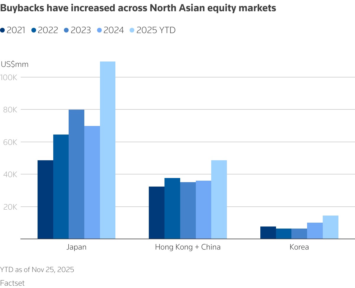 Buybacks have increased across North Asian equity markets