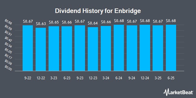 Enbridge Inc (NYSE:ENB - Get Free Report) TSE: ENB declared a quarterly dividend on Tuesday, December 2nd. Investors of record on Tuesday, February 17th will be paid a dividend of 0.97 per share by the pipeline company on Sunday, March 1st. This represents a c) dividend on an annualized basis and a yield of 8.1%. The ex-dividend date is Tuesday, February 17th. This is a 2.9% increase from Enbridge's previous quarterly dividend of $0.94.