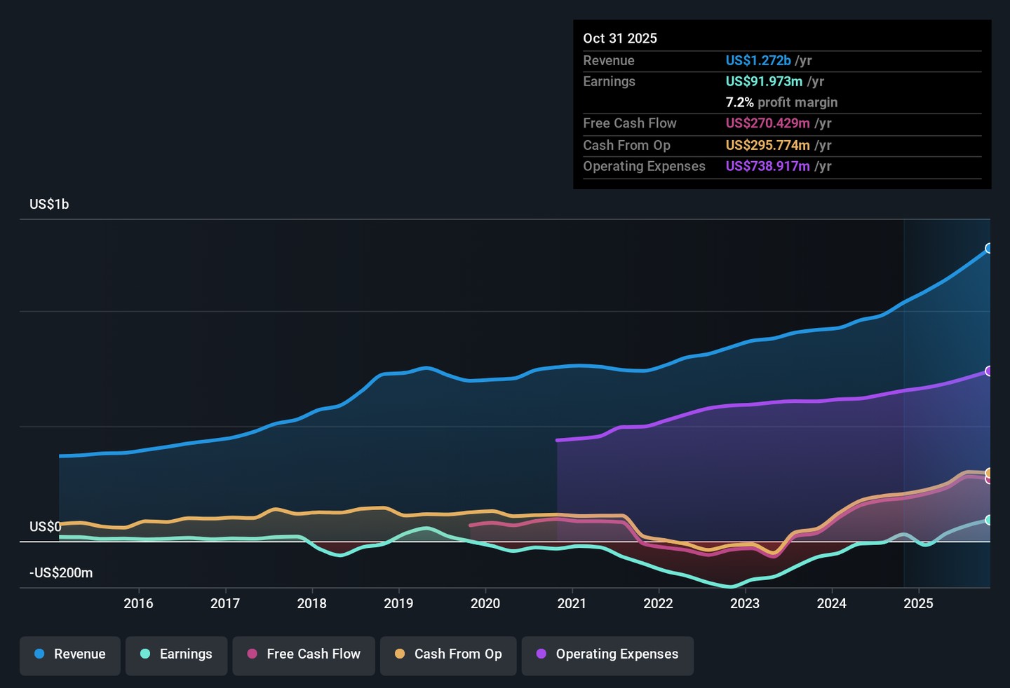 - At the same time, the one off loss of 55.7 million dollars in the last 12 months shows that not all profitability drivers are smooth, which is a nuance sometimes glossed over in bullish discussions of margin expansion.