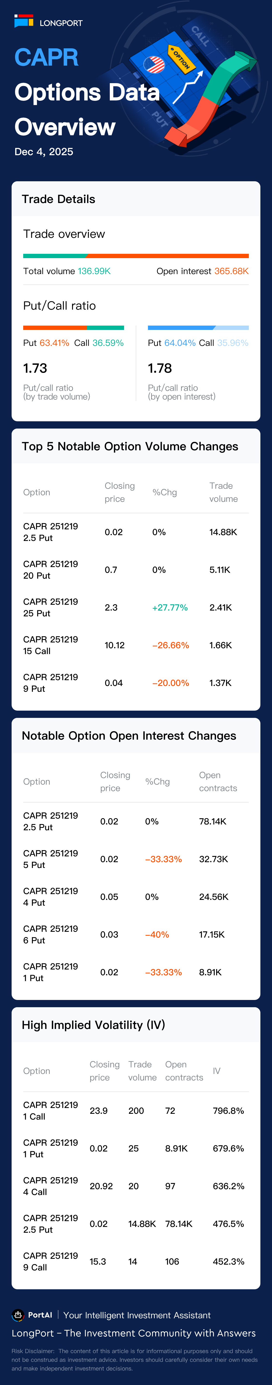 Trending | CAPR Plummets 15% on Thursday, Some Put options Increases 27%