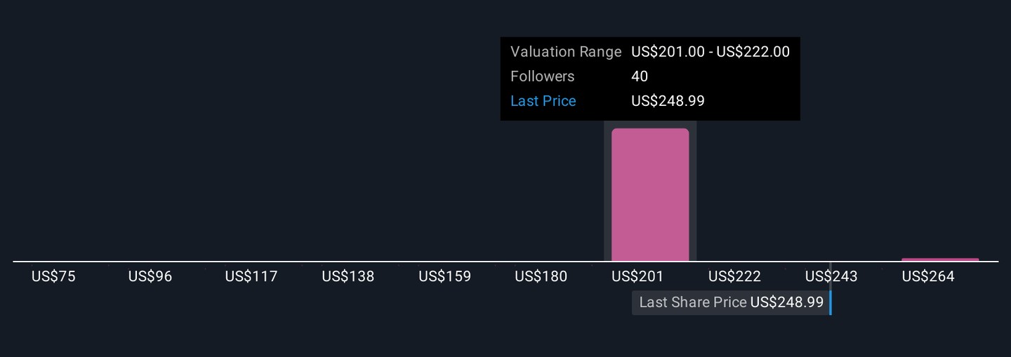 Six Simply Wall St Community fair value estimates for Garmin span a wide range, from US$119 to US$285 per share, showing how far apart views can be. Against this spread, the key concern many will weigh is whether slower Outdoor demand and rising operating expenses could constrain the earnings power needed to support the higher end of those expectations, so it can be useful to compare several of these perspectives side by side.