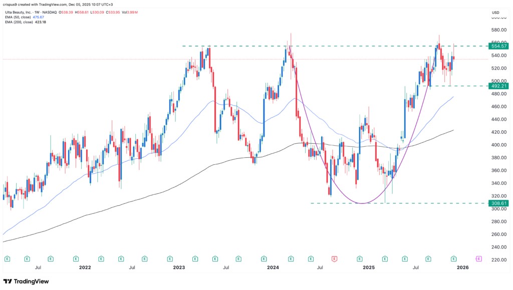 The post Ulta Beauty stock pattern points to $600 as earnings rise appeared first on Invezz