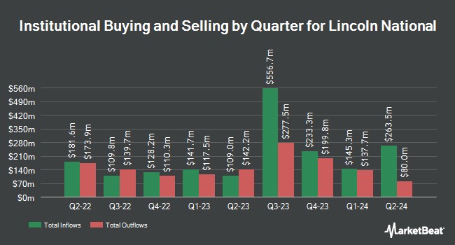 Other large investors also recently made changes to their positions in the company. Beacon Pointe Advisors LLC raised its position in Lincoln National by 19.6% during the second quarter. Beacon Pointe Advisors LLC now owns 64,931 shares of the financial services provider's stock worth $2,247,000 after acquiring an additional 10,652 shares in the last quarter. Quantbot Technologies LP increased its stake in shares of Lincoln National by 28.4% during the 2nd quarter. Quantbot Technologies LP now owns 281,599 shares of the financial services provider's stock worth $9,743,000 after purchasing an additional 62,223 shares during the last quarter. Norges Bank bought a new stake in shares of Lincoln National in the 2nd quarter valued at about $87,362,000. Measured Wealth Private Client Group LLC lifted its stake in Lincoln National by 27.5% in the 2nd quarter. Measured Wealth Private Client Group LLC now owns 8,373 shares of the financial services provider's stock valued at $290,000 after purchasing an additional 1,805 shares during the last quarter. Finally, Northwestern Mutual Wealth Management Co. lifted its stake in Lincoln National by 4.6% in the 2nd quarter. Northwestern Mutual Wealth Management Co. now owns 46,013 shares of the financial services provider's stock valued at $1,592,000 after purchasing an additional 2,038 shares during the last quarter. Institutional investors and hedge funds own 72.81% of the company's stock.