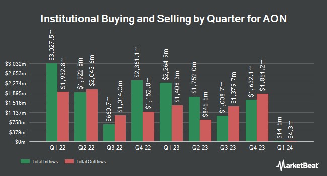 A number of other hedge funds have also bought and sold shares of AON. Saudi Central Bank purchased a new stake in shares of AON during the first quarter valued at $31,000. Atlantic Union Bankshares Corp acquired a new stake in AON during the 2nd quarter worth about $31,000. Pinnacle Bancorp Inc. grew its stake in AON by 56.9% during the 2nd quarter. Pinnacle Bancorp Inc. now owns 91 shares of the financial services provider's stock valued at $32,000 after purchasing an additional 33 shares during the last quarter. Trust Co. of Toledo NA OH acquired a new position in shares of AON in the second quarter valued at about $32,000. Finally, Twin Peaks Wealth Advisors LLC acquired a new stake in shares of AON during the second quarter worth about $37,000. Institutional investors and hedge funds own 86.14% of the company's stock.