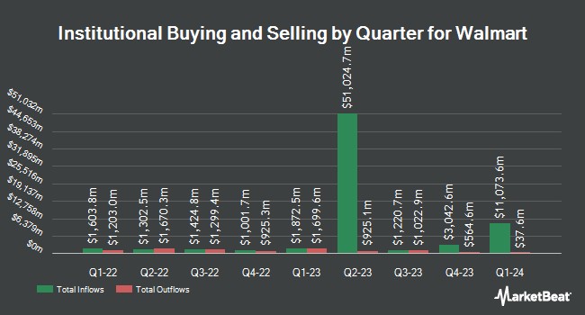 A number of other large investors also recently made changes to their positions in the company. Kingstone Capital Partners Texas LLC increased its stake in Walmart by 397,264.9% in the 2nd quarter. Kingstone Capital Partners Texas LLC now owns 104,514,912 shares of the retailer's stock valued at $10,496,702,000 after buying an additional 104,488,610 shares during the last quarter. Norges Bank purchased a new position in shares of Walmart in the 2nd quarter worth approximately $5,367,770,000. Nuveen LLC bought a new position in shares of Walmart in the first quarter valued at approximately $2,532,331,000. Laurel Wealth Advisors LLC increased its position in shares of Walmart by 9,648.7% during the second quarter. Laurel Wealth Advisors LLC now owns 11,486,374 shares of the retailer's stock valued at $1,123,138,000 after acquiring an additional 11,368,549 shares during the last quarter. Finally, Vanguard Group Inc. lifted its holdings in Walmart by 1.4% during the second quarter. Vanguard Group Inc. now owns 431,817,510 shares of the retailer's stock worth $42,223,116,000 after acquiring an additional 5,856,468 shares during the period. 26.76% of the stock is owned by institutional investors.