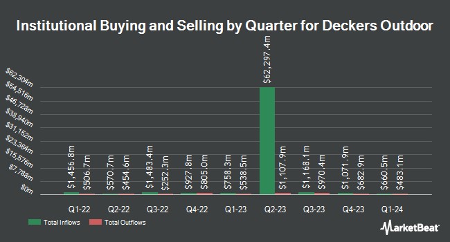Other large investors have also made changes to their positions in the company. Vanguard Group Inc. lifted its position in Deckers Outdoor by 0.6% during the first quarter. Vanguard Group Inc. now owns 17,747,418 shares of the textile maker's stock worth $1,984,339,000 after buying an additional 107,635 shares in the last quarter. Geode Capital Management LLC grew its holdings in Deckers Outdoor by 2.7% in the 2nd quarter. Geode Capital Management LLC now owns 4,427,639 shares of the textile maker's stock valued at $454,662,000 after buying an additional 114,779 shares in the last quarter. Norges Bank acquired a new stake in shares of Deckers Outdoor in the 2nd quarter worth $223,036,000. Northern Trust Corp raised its holdings in shares of Deckers Outdoor by 6.2% during the 1st quarter. Northern Trust Corp now owns 1,680,558 shares of the textile maker's stock worth $187,903,000 after acquiring an additional 98,856 shares during the period. Finally, UBS AM A Distinct Business Unit of UBS Asset Management Americas LLC raised its holdings in shares of Deckers Outdoor by 6.8% during the 1st quarter. UBS AM A Distinct Business Unit of UBS Asset Management Americas LLC now owns 1,520,461 shares of the textile maker's stock worth $170,003,000 after acquiring an additional 97,312 shares during the period. 97.79% of the stock is currently owned by hedge funds and other institutional investors.