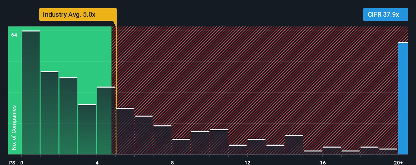On a revenue multiple basis, Cipher looks stretched, trading at a 37.9x price to sales ratio versus 5x for the US software industry, 21x for peers, and a fair ratio of 8.4x that the market could drift toward. This raises the risk of a sharp de rating if growth stumbles.