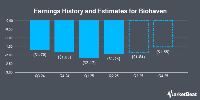 Biohaven (NYSE:BHVN - Get Free Report) last announced its quarterly earnings data on Monday, November 10th. The company reported ($1.64) EPS for the quarter, topping the consensus estimate of ($1.91) by $0.27.