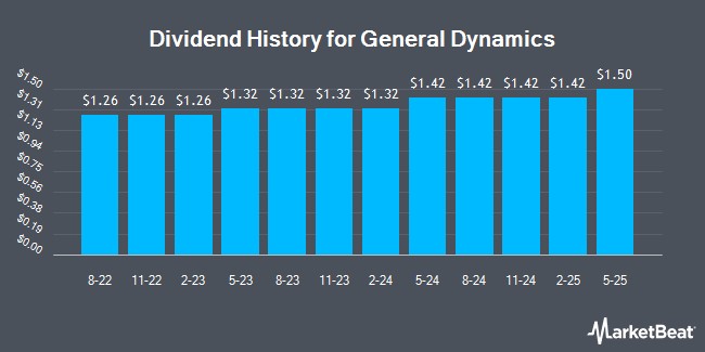 General Dynamics Corporation (NYSE:GD - Get Free Report) announced a quarterly dividend on Wednesday, December 3rd. Investors of record on Friday, January 16th will be paid a dividend of 1.50 per share by the aerospace company on Friday, February 6th. This represents a c) annualized dividend and a yield of 1.8%. The ex-dividend date of this dividend is Friday, January 16th.