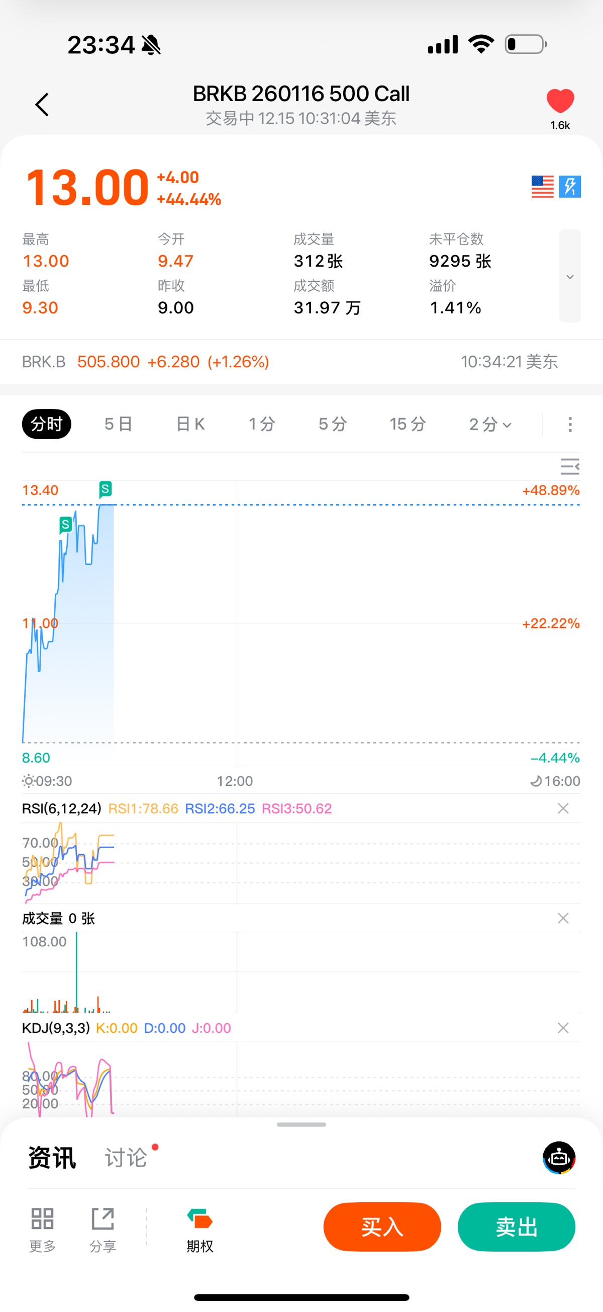 $BRKB 260116 500 Call(BRKB260116C500000.US)Time is running out, not investment advice!