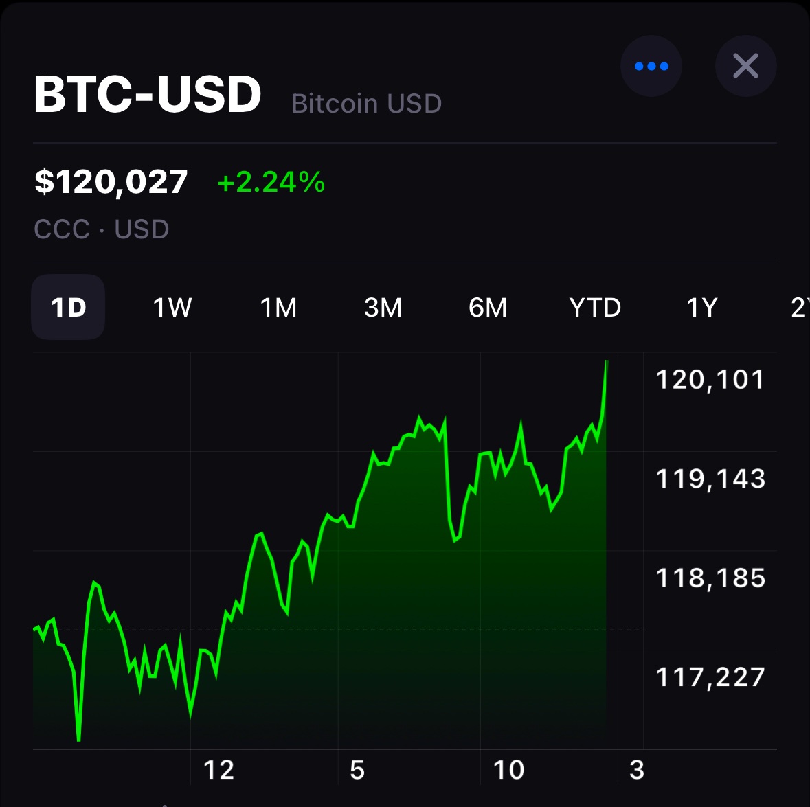 Bitcoin ( $Grayscale Bitcoin Mini Trust ETF(BTC.US) ) is back over $120K again.