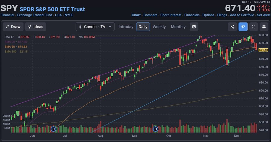Don't look now but the $SPDR S&P 500(SPY.US) just closed below it's 50 DMA