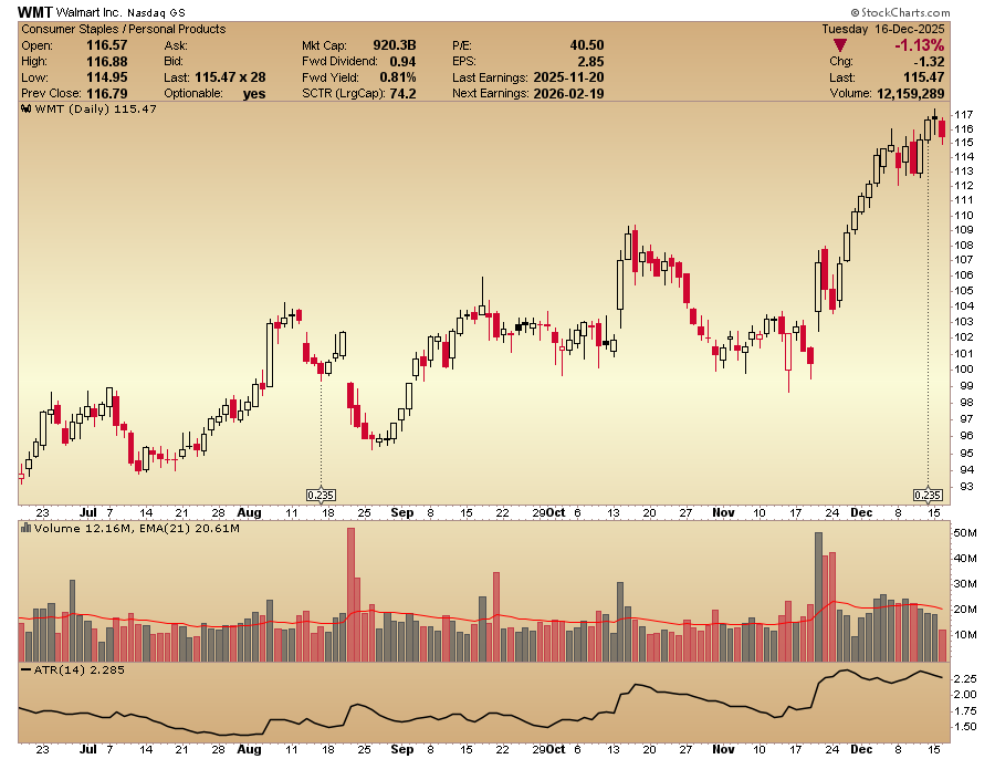 $Walmart(WMT.US) one more chart I meant to post. What I call a naked chart. No indicators, no ma's, no annotations, no trendlines, just price volume and ATR. I use this chart along with many other c...