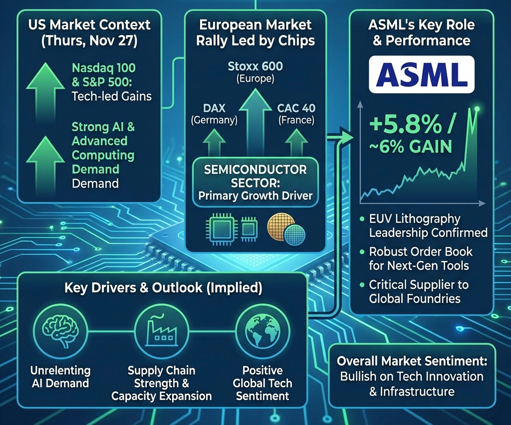 The AI trade is booming but selective! NVIDIA's rebound ignited its ecosystem, sending CoreWeave and Broadcom soaring. While Google dipped on regulation, ASML's 6% surge powered Europe's rally.