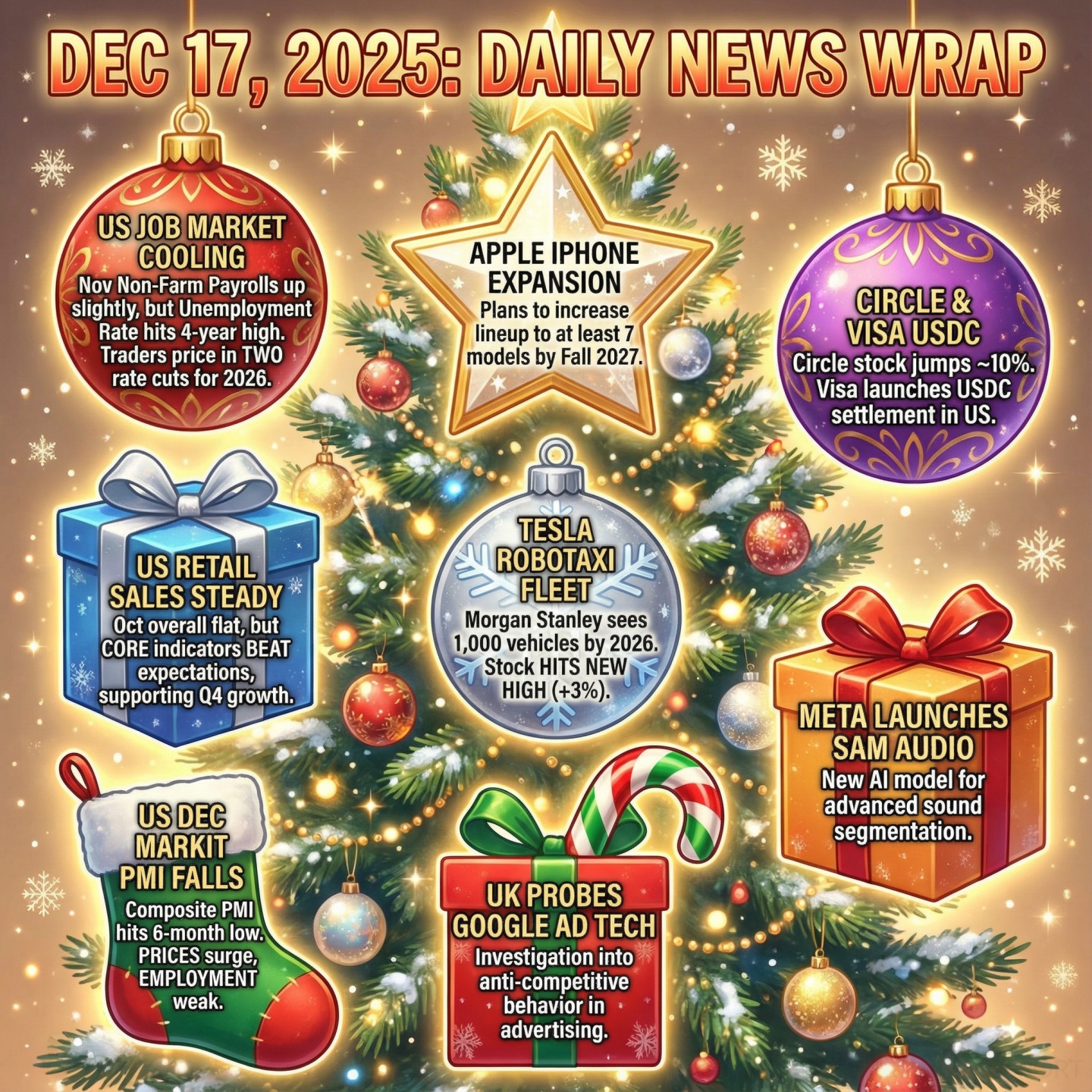 📈 U.S. Market Wrap – Dec 17: Jobs Cooling, Tech Expanding & AI Sound Drops 🎧
