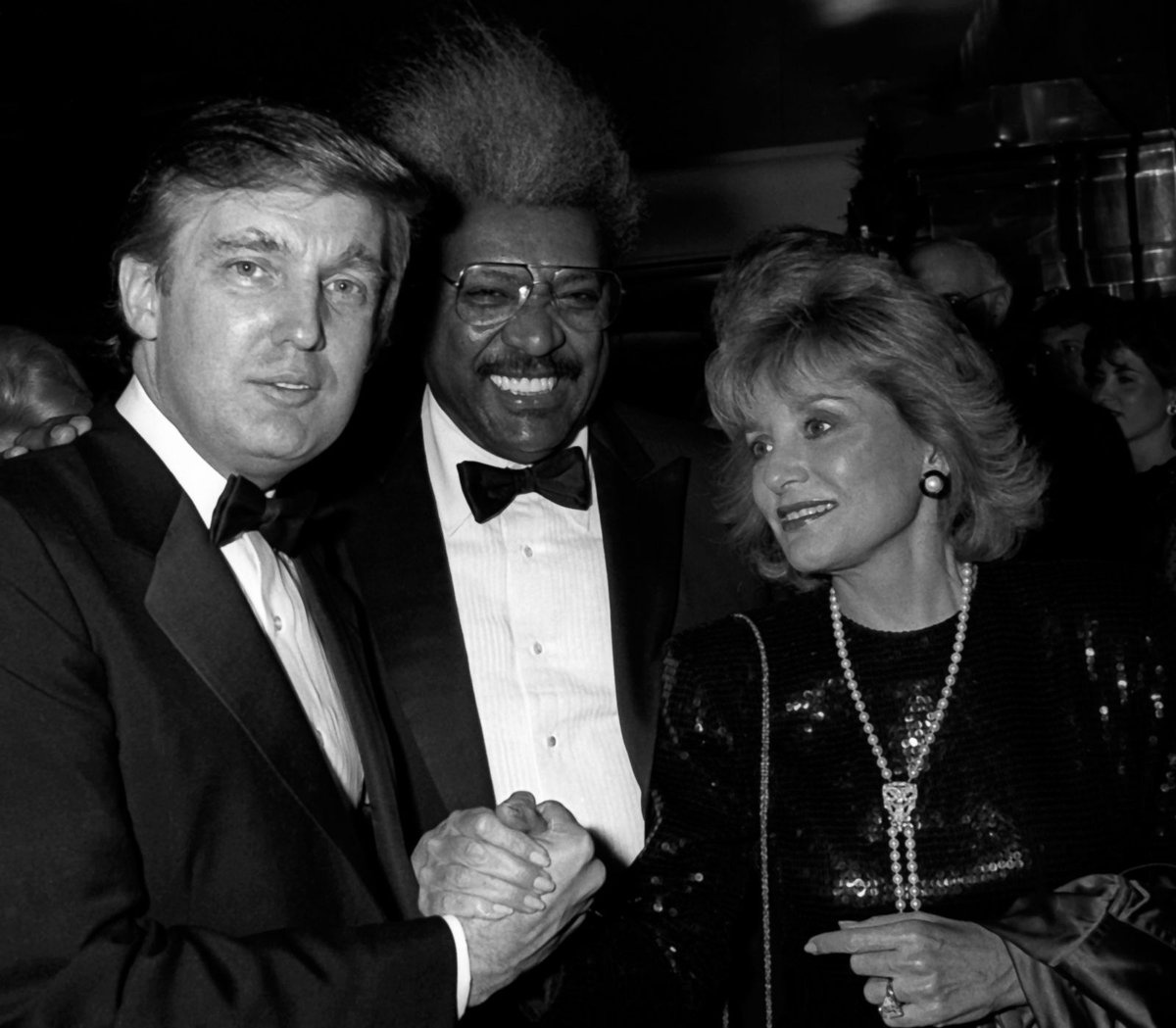 Vintage photo of President Trump with fight promoter Don King and the founder of the ABC show "The View", Barbara Walters