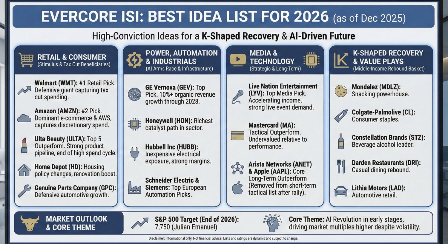 Evercore ISI 发布《Best Idea List for 2026》解读