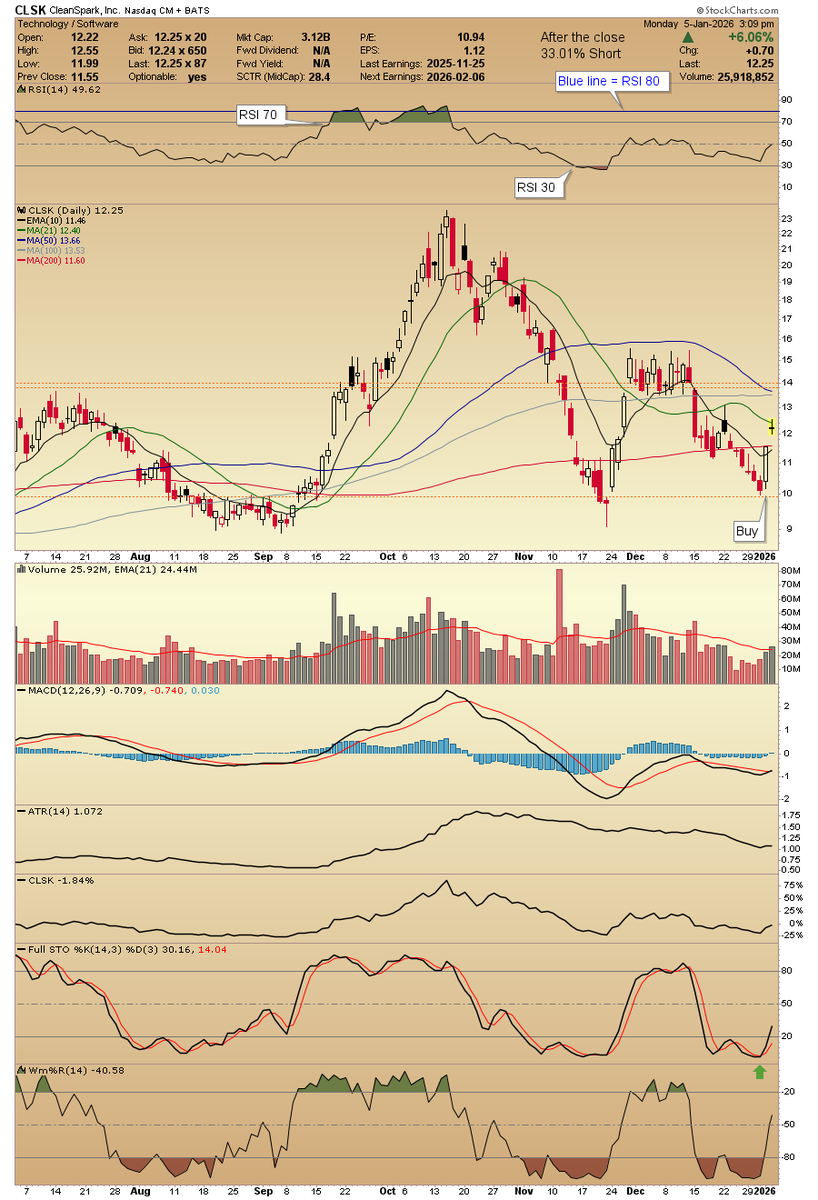 $CleanSpark(CLSK.US) back over 200ma and gap up today. Above avg volume on the day with indicators reset and ready if price wants it. 12.40 a move and hold over on my radar