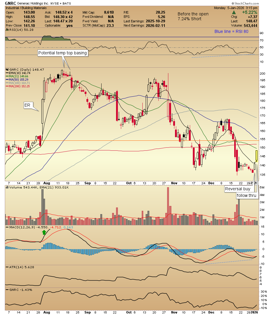 $Generac(GNRC.US) with follow thru today. Watching 150 area for next level. I will take my paydays off before the close today.