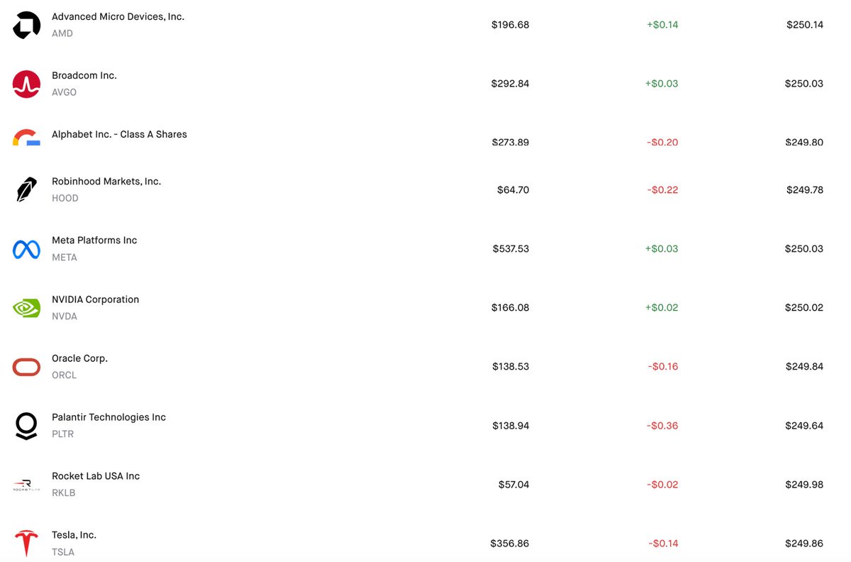 I'm waiting for a $35K transfer to clear into my Solo-401K but so far $2500 has transferred so I picked 10 of my favorite names and put $250 in each...