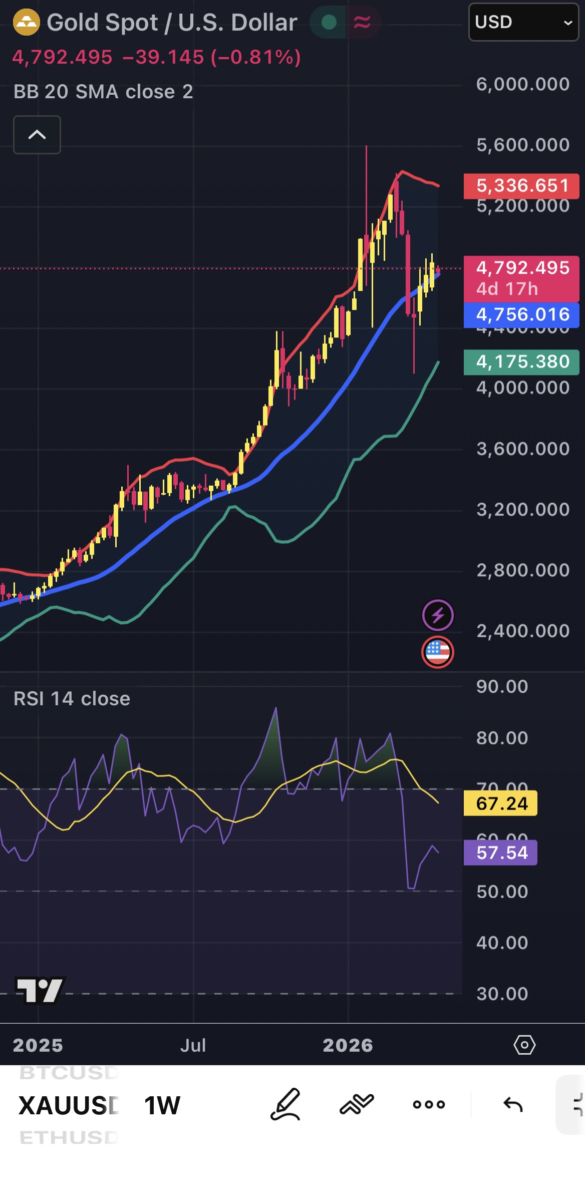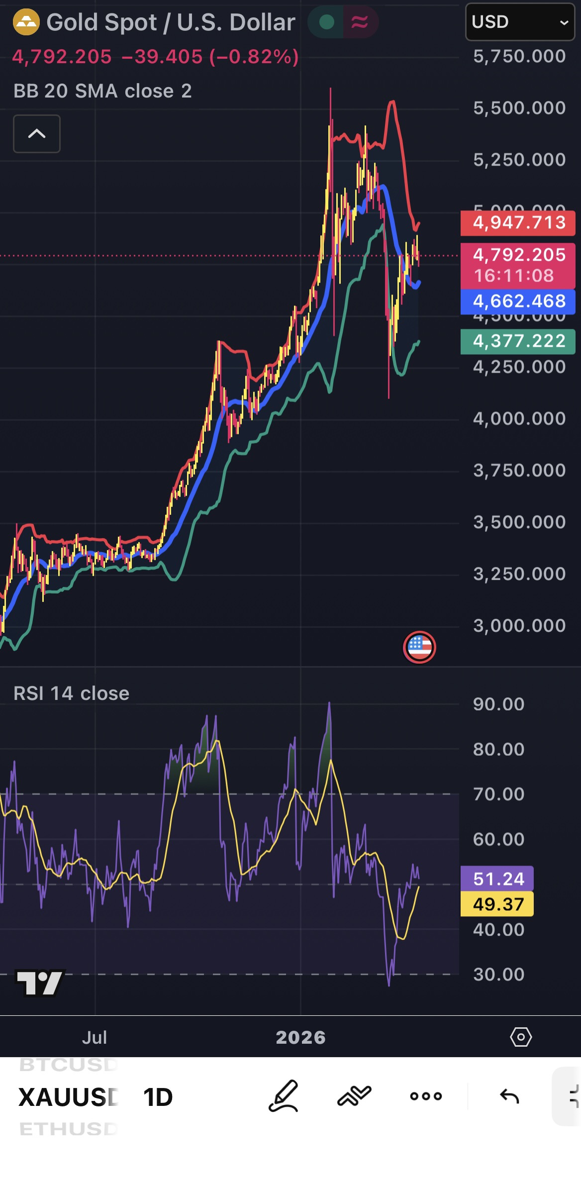 • Resistance: $4,950 – $5,000 (Psychological barrier).