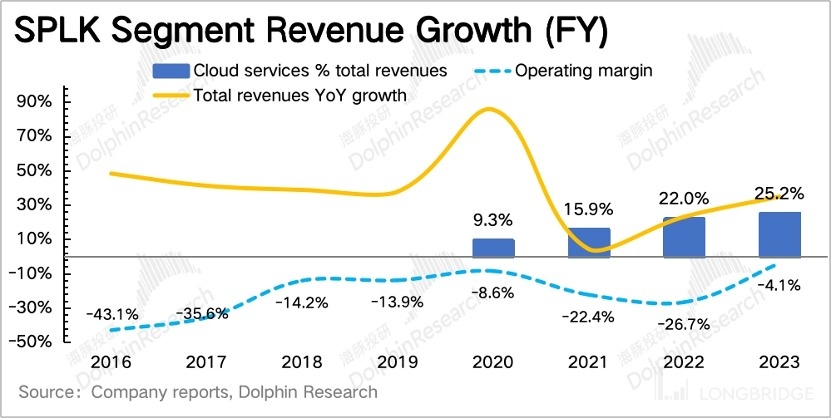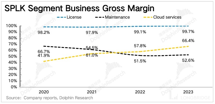 Qualitatively, of course, the most critical thing is the company's own business model switch-such as from signing contracts to selling licenses to cloud subscriptions. From Splunk's pre-and post-transformation comparison, we conclude that the shift from selling mainland-deployed kits to offering cloud-based subscriptions will gradually improve overall profitability as the scale of cloud service revenue continues to expand and the acquisition and maintenance cost rate of individual customers decreases.