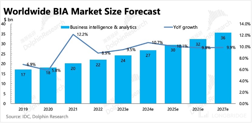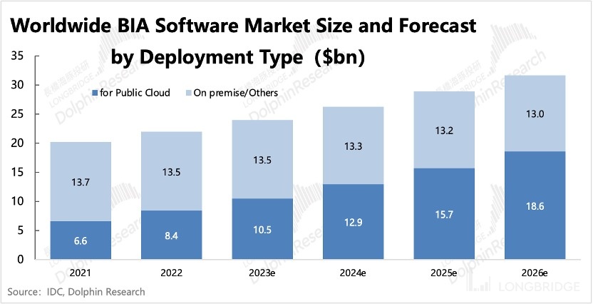This is also illustrated from another perspective, in the third-party consulting firm IDC's market size forecast for future business intelligence analysis, also gave a significantly higher growth rate for cloud-based service product forms than the business model of selling software alone.