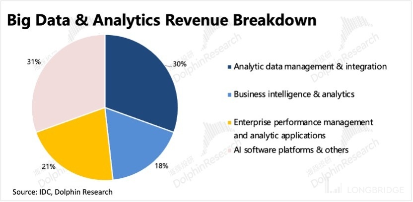 But the question is whether the "data analysis" link in the industry chain can be profitable alone, there have always been doubts in the market. The above-mentioned giants in the field of big data (IBM, Oracle, SAP, Microsoft, Google, etc.) often take advantage of their original advantages in data sources (data accumulation) or software and hardware infrastructure to further dabble in the subdivision of data analysis. Moreover, compared with [business analysis], which has higher technical requirements and more personalized customer needs, [BI business intelligence software] is more versatile, that is, it is easier to scale, so it will run faster in business models.