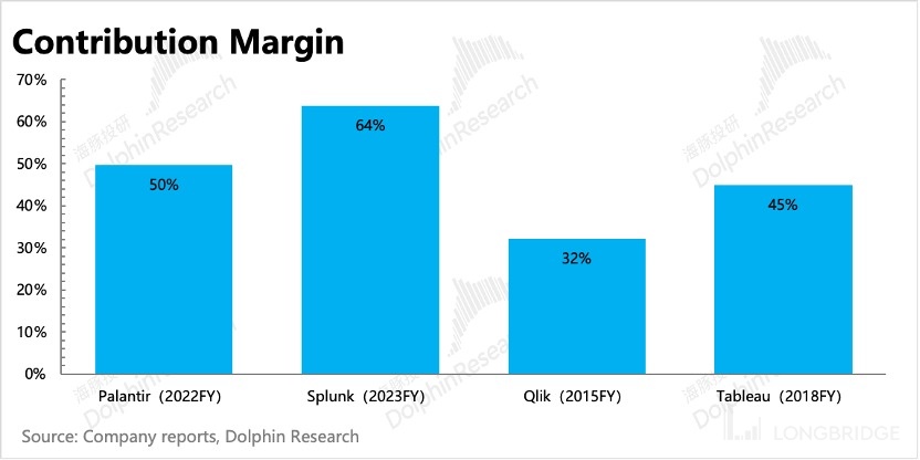 What level does that Palantir place in the peers? Because Palantir have a special advantage in the government sector, we compare the marginal profit margin of the commercial market horizontally with our peers (Splunk, Tableau, Qlik):