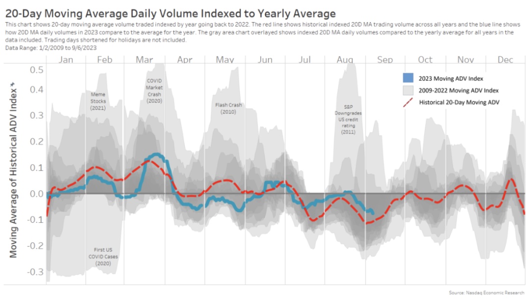 图表 2:夏季交易量通常会放缓